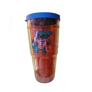 24 oz Florida Gator Tervis Tumbler. Excellent Used Condition! Orange double walled drink cup withagator patch and blue Lid. No major Flaws Present