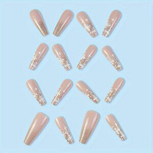 24pcs Christmas Press-On Nails Set - Long Ballerina, Glittery Pink & White