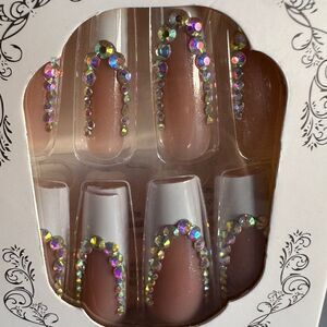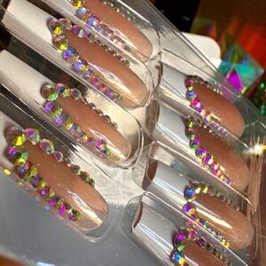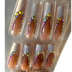 24pcs Glossy Coffin French Nude Ballerina PressOn Nails & Crystal Embell…