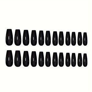 24pcs Long Coffin Press-On Nails – Square Shape | Easy Application Jelly Glue