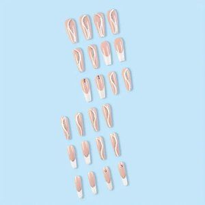 24pcs White French Tip Fake Nails, Glitter Swirl Press On Nails