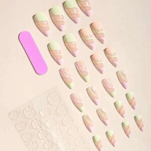 24 pcs Acrylic Almond Press On Nail Set Reusable