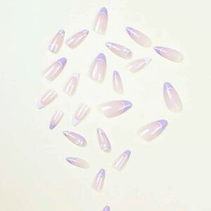 24 pcs Acrylic French Almond Press On Nail Set Reusable