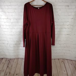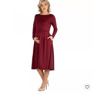 24seven Maternity Midi Dress Long Sleeve Fit and Flare Burgundy 2X NWOT