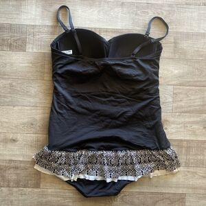 24th and Ocean Womens Size XL One Piece Swimsuit Black Geometric Padded Top