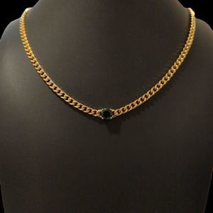 24" x 3mm 14K Gold Finish Green Stone Cuban Chain Over Stainless Steel.