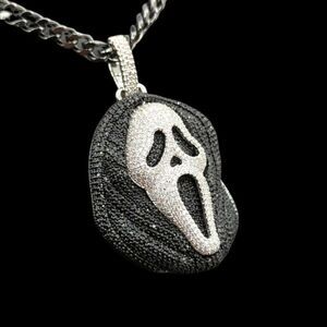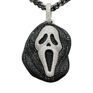New Icy Supreme Quality Black Gun Finish Ghost Mask Pendant over Brass Dipped In Gun Finish 5xTimes To Include a Free Gun Finish 24inch x 5mm Cuban Chain For Men.