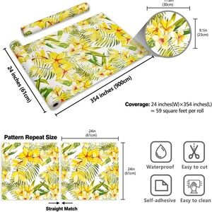 🏵 [ Product Details ] - Roll of 24 inch wide by 354 inch long, covers 59 sq.ft. Pattern repeat size is 24"x24", straight match, easy to line up. Matte finish, white background with yellow flowers and green leaves, create an indoor garden with floral wallpaper