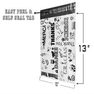 (25) 10x13 Thank You Poly Mailers Multi-Language 2.3Mil Heavy Duty Self Sealing