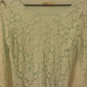 Mint blue/green lace 3/4 fitted sleeve Hollister top only worn once