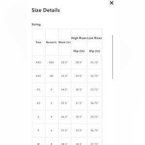 Rise:7.5 inches, inseam: 30 inches, waist, 24 inches, length, 37 inches (laying flat)