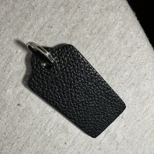 2.5" COACH NEW YORK Black Pebbled Leather Brass Fob Bag Charm Keychain Hang Tag