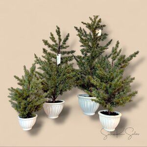 From the discontinued 2024 Christmas collection, this large 30-inch faux spruce tree brings natural elegance to any room. Complete the look with matching 16”, 22”, and 42” trees for a cohesive, Joanna Gaines-inspired holiday display. See final two photos for all trees available.