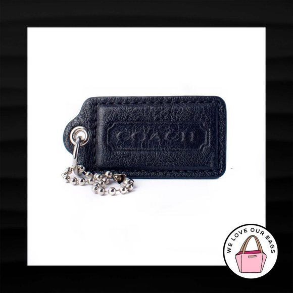 2.5" Large COACH BLACK LEATHER KEY FOB BAG CHARM KEYCHAIN HANGTAG TAG