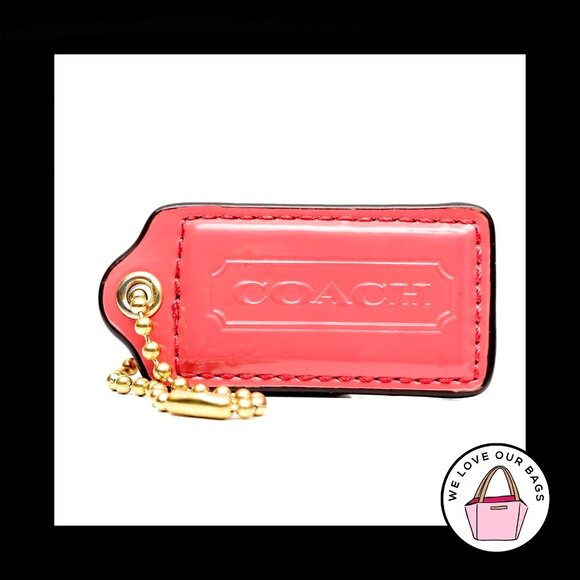 2.5" Large COACH Pink PATENT LEATHER Brass Key Fob Bag Charm Keychain Hang Tag