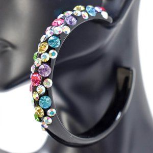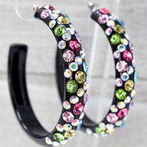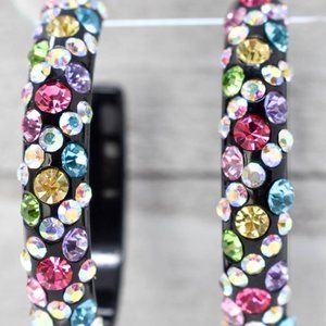 2.5" Light Multicolor Rhinestone Hoop Earrings