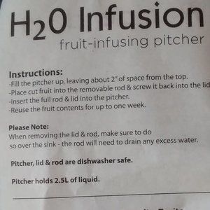 Water Pitcher with removable fruit infusion rod.. Two and half Liter Capacity.