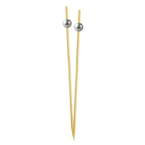 25 New 6" Wood Cocktail + Appetizer Picks with Silver Balls