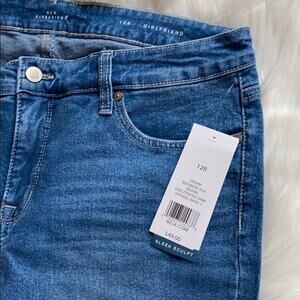 Brand New With Tags Cuffed Girlfriend Jeans Size 12R .Sleek Sculpt Details: Straight leg Classic 5 pocket styling Regular fit Button closure zip closure belt loops lmported 24 in lnseam Demin Cotton Hand wash