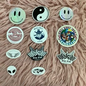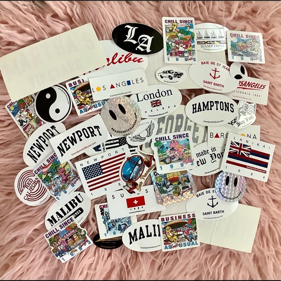 Aloha, all of my stickers are brand new and in perfect condition! You will receive a random assortment of 25 Brandy Melville stickers that may include some duplicates. Bundles of 2 or more items will receive 10% off! Also, feel free to make a reasonable offer! If you want to choose the stickers you receive go to my other listing: https://posh.mk/PKAz114TZ9