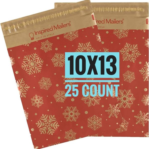 25 Red Snowflake Poly Mailers 10x13 Christmas