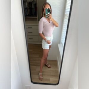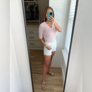 Half Sleeve V-Neck Spandex Tee. Made of 95% cotton and 5% spandex, making it soft, comfortable, and stretchy. This top is slim fit and is also available in several other colors. Check out my closet for other color options, bundle and save! All items are brand new with tags and in perfect condition!