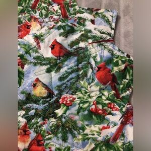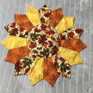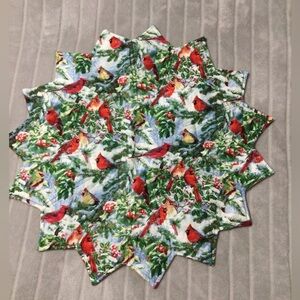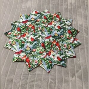25” Table Topper Fall Leaves Design and Cardinals Winter on the Reverse Side