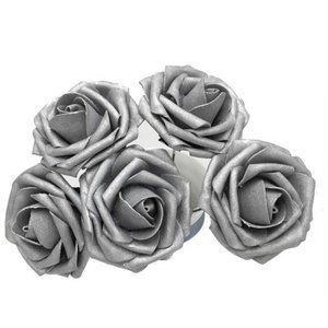 25 pcs Silver Roses Flowers with stems Realistic Floral Grey Wedding Bouquet