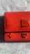 Elegant MCM wallet in vibrant orange leather. Features iconic logo accents. Perfect for adding a pop of color.