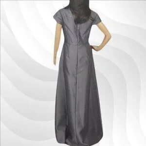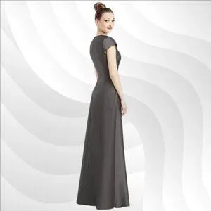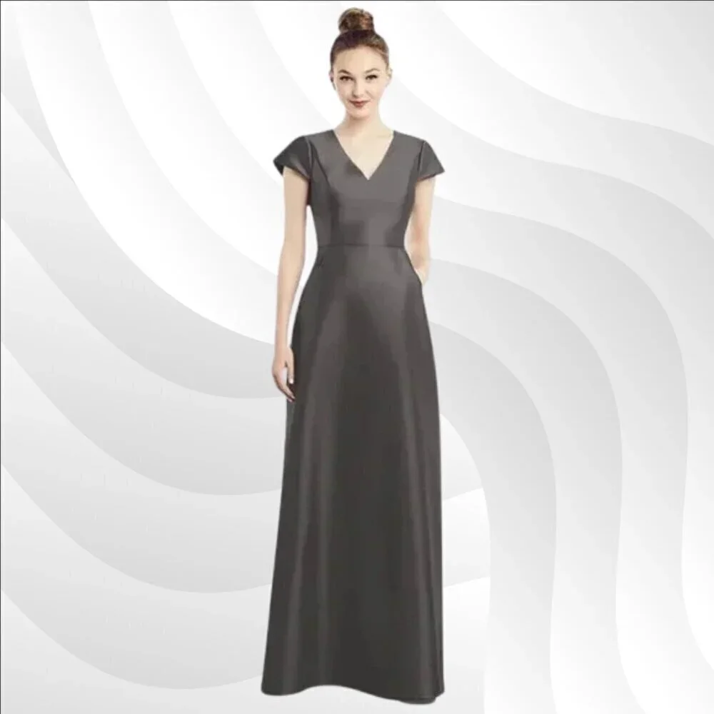Alfred Sung Dress, Caviar Sateen Gown, Twill Formal Dress, Cap Sleeve Dress, Elegant Evening Wear, Wedding Guest Dress, Bridesmaid Dress, Special Occasion Dress, Floor-Length Gown, Luxury Fabric, Sophisticated Style, Classic Fashion, Timeless Elegance, Chic & Stylish, Formal Maxi Dress, Designer Dress, High-Quality Fabric,