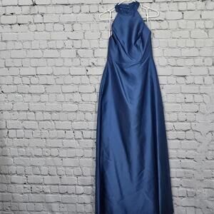 2/$50 Alfred Sung Dusk Blue Satin Twill Halter Dress D772 Size 4 | Elegant