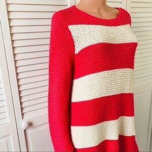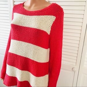 2/$50 CHICO’S Coral Ivory Striped Sparkly Scoop Neck Sweater Size Large