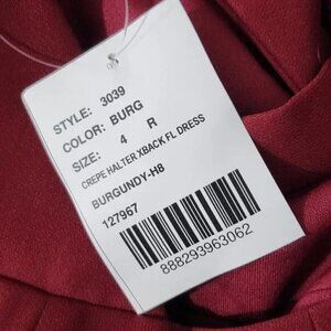 2/$50 Dessy Collection High Neck Backless Crepe Trumpet Gown Burgundy Size 4R