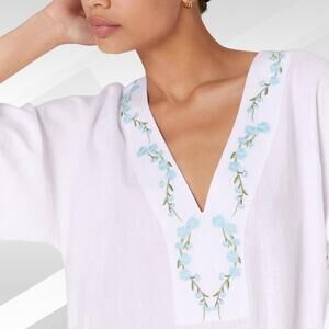 2/$50 Fanm Mon x Andie Linen Kepez Kaftan Dress White Size XL | Resort Style