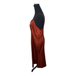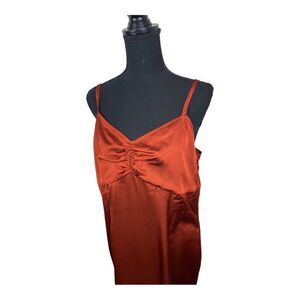 #250 MELROSE and MARKET Ruched Satin Slip Dress in Rust Henna