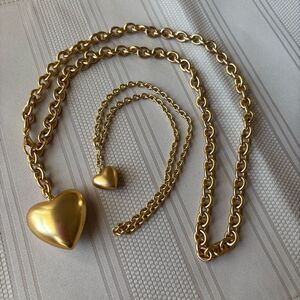 $250 Roxanne Assoulin Puffy Heart Necklaces Set of 2 (Gold, Small & Large)