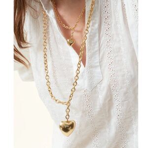 This bundle includes 2 Roxanne Assoulin Puffy Heart Necklaces in gold: one small size and one large size.