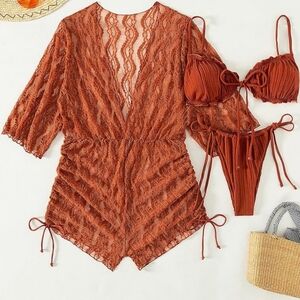 2/$50 Rust Burnt Orange Sheer Summer Beach Bikini Set Drawstring Cover Up