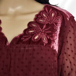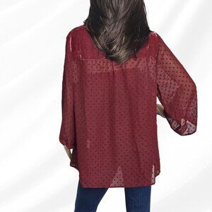 Style & Co plus size blouse, red sheer sleeve top, mixed media blouse, womens 0X red blouse, new with tags Style & Co, plus size dressy top, eyelet red blouse, stylish work blouse, sheer sleeve plus size shirt, womens red top, casual chic plus blouse, elegant red top, flowy red blouse, Style & Co womens fashion