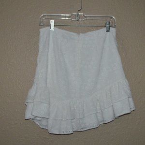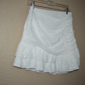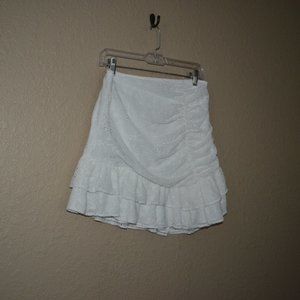 $250 Sz S/M Majorelle White Eyelet Ruched Asymmetrical Mini Skirt