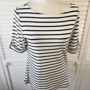 2/$50 TOMMY HILFIGER Black & White Striped Top Size Petite Small