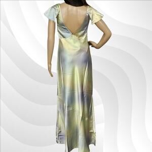 WeWoreWhat slip dress, silky lace dress, watercolor maxi dress, charmeuse evening dress, lace trim dress, size 4 slip gown, romantic silky dress, WeWoreWhat size 4, elegant maxi slip dress, special occasion dress, lace long dress, luxe silky dress, beach wedding guest dress
