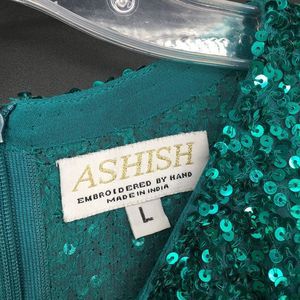 $2500 Ashish Green Twist Sequin Maxi Dress Size Large Long Sleeve NWOT Sheath