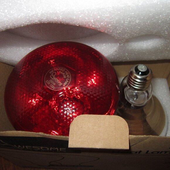 Set of 2 infrared heat lamp bulbs, perfect for chicks/ the brooder or other livestock. Some people like to use these in their bathrooms for after they shower.
