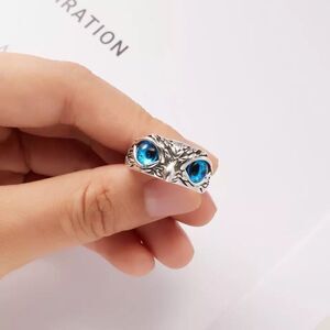 This vintage style bird of prey ring with bright, beguiling, owl eyes, set in silver stainless steel draws people in and is a great conversation starter!