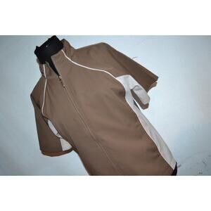 25146 IZOD Golf Jacket Windbreaker Zip Tan Polyester Size Large Womens
