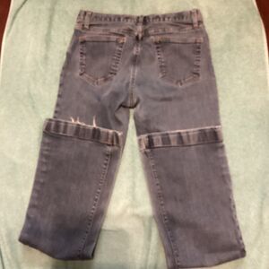 These jeans are in good shape. A little fraying on the bottom of the legs. See the pics