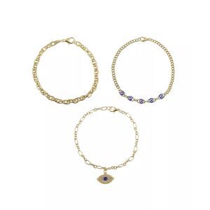 Gold-Tone 3pc Set Blue Evil Eye Pave Anklets, 8.5"