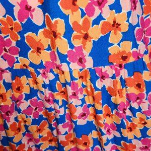 NWT Skies Are Blue boutique brand floral skirt features front waistband with comfort elastic in back, tiered full skirt in vibrant blue & tangerine...fun and summery! Perfect for any occasion, this skirt adds a pop of color to your wardrobe.