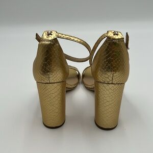 Sam Edelman, Yaro Sandals, Gold Sandals, Boa Print, Ankle Strap Heels, Block Heel Sandals, Dress Sandals, Evening Shoes, Party Heels, Women’s Size 9.5